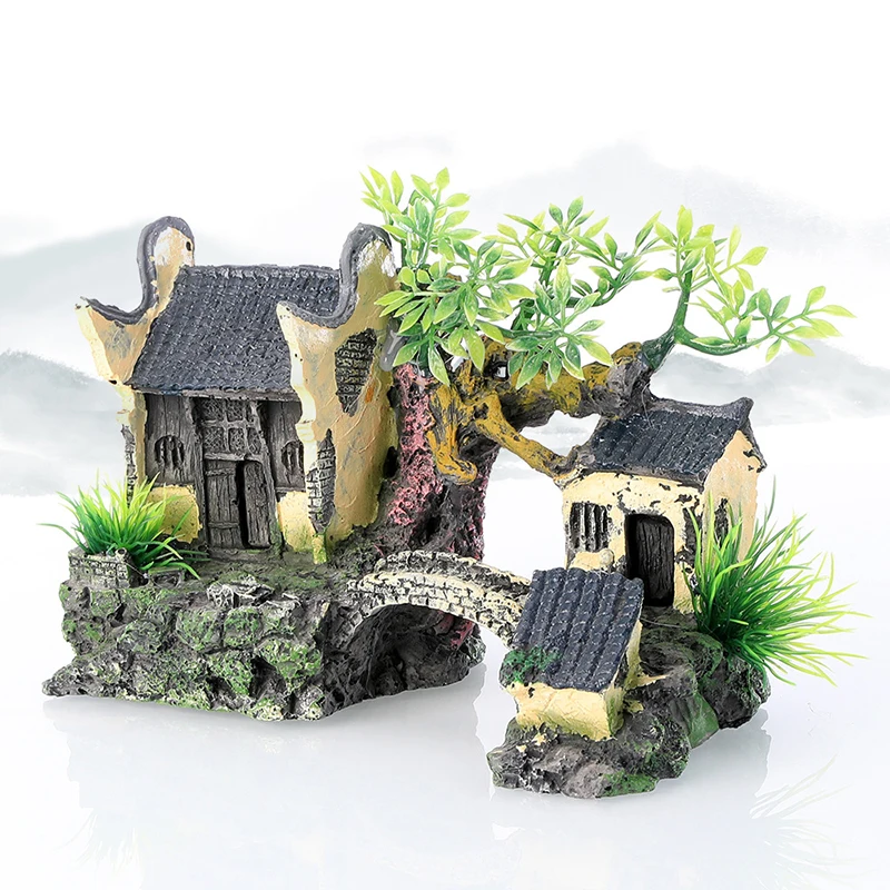 Resin Aquarium Decoration Simulated Attic Pavilion Artificial House View Rock CaveTree Fish Tank Ornament Pet Supplies Home Deco