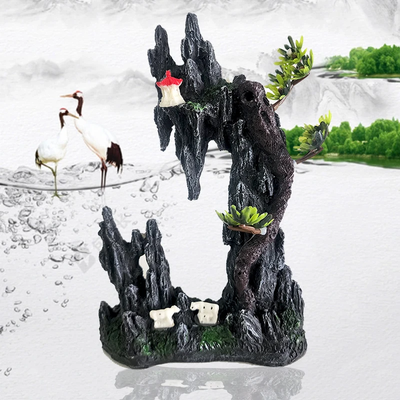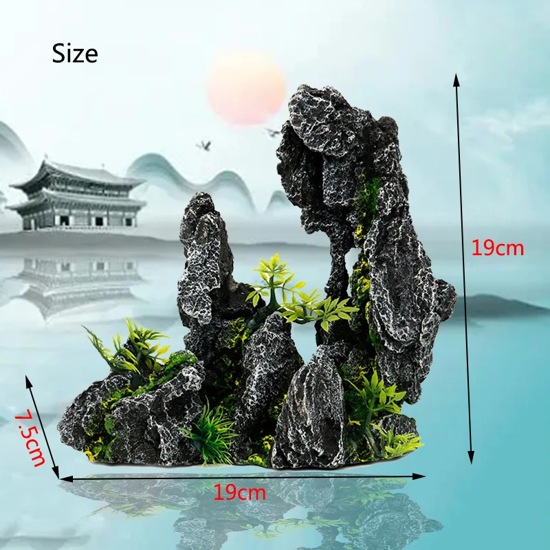 Resin Aquarium Rockery Mountain Decoration Artificial View Rock Cave Stone Tree Fish Tank Ornament Pet Supplies Home Decor