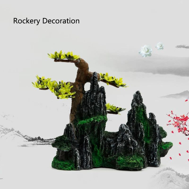 Resin Aquarium Rockery Mountain Decoration Artificial View Rock Cave Stone Tree Fish Tank Ornament Pet Supplies Home Decor