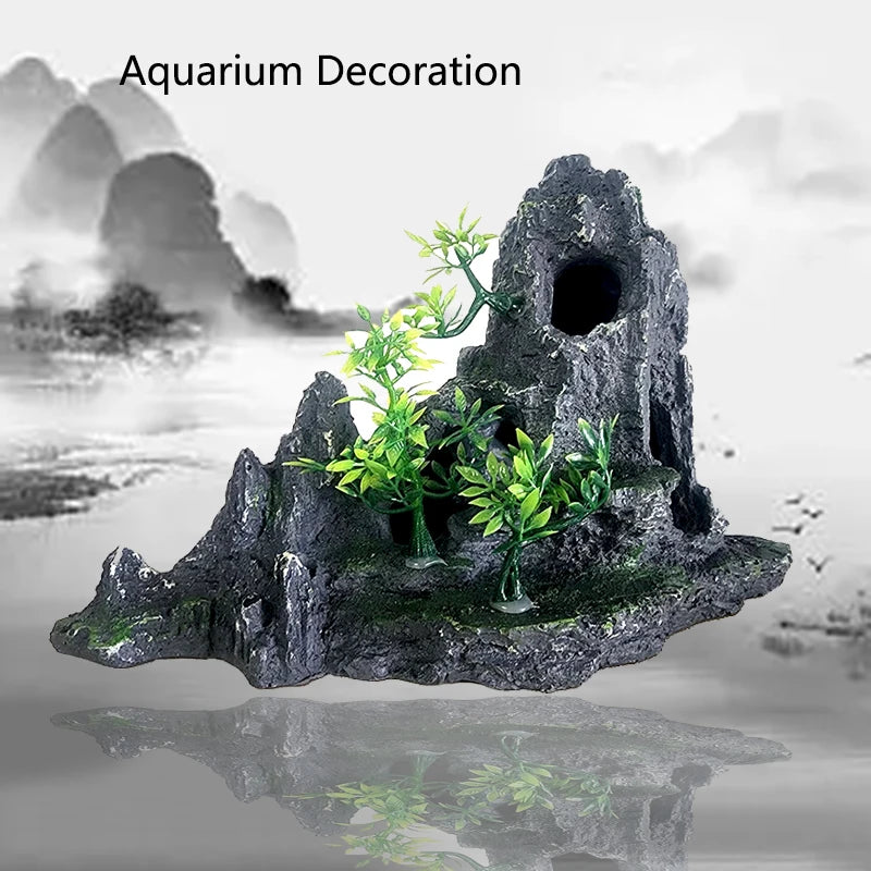 Resin Aquarium Rockery Mountain Decoration Artificial View Rock Cave Stone Tree Fish Tank Ornament Pet Supplies Home Decor New