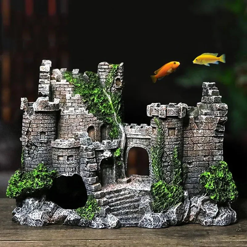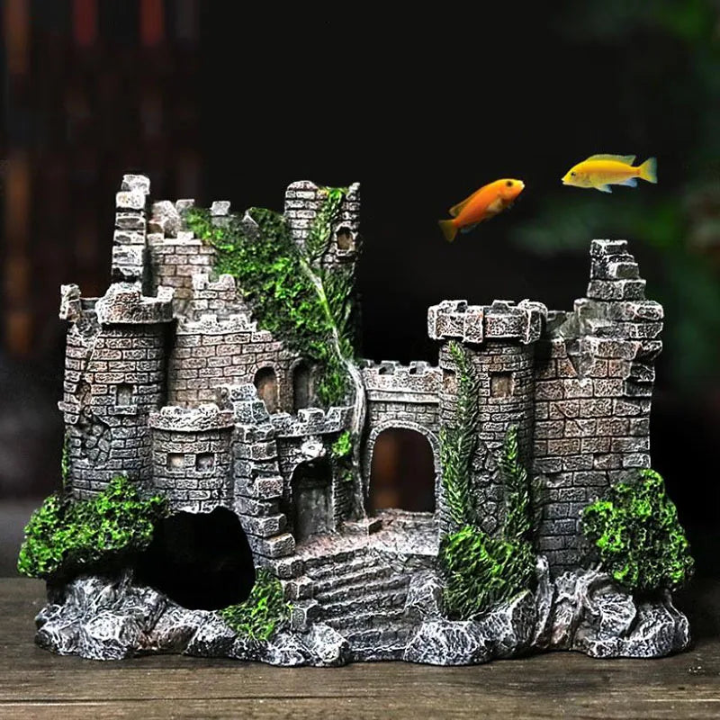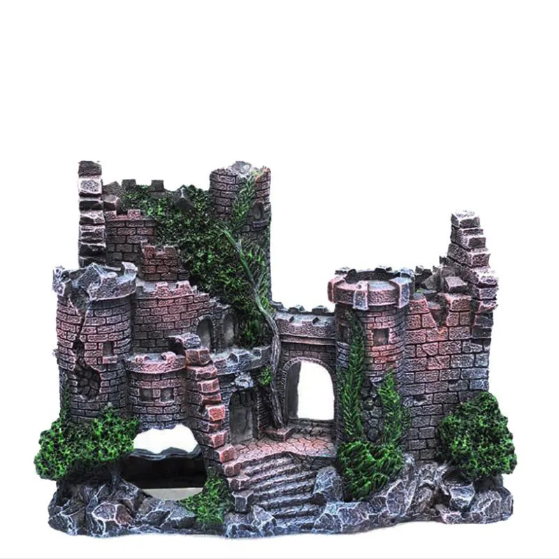 New Resin Artificial Fish Tank Ancient Castle Decoration Aquarium Rock Cave Building Decoration Aquatic Landscaping Ornament
