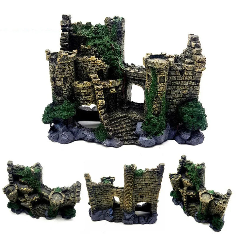 Resin Artificial Fish Tank Ancient Castle Aquarium Decoration Rock Cave Building Decor Ornament Aquatic Landscaping Dropshipping