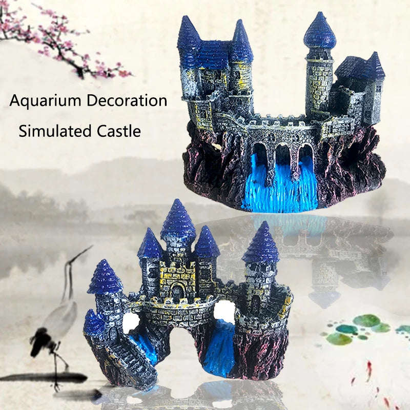 Resin Artificial Fish Tank Ancient Castle Decoration Aquarium Rock Cave Building Decoration Aquatic Landscaping Ornament Decor