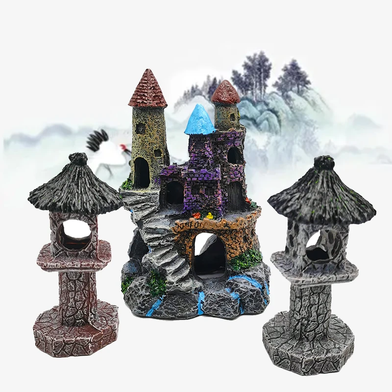 New Resin Artificial Fish Tank Ancient Castle Decoration Aquarium Rock Cave Building Decoration Aquatic Landscaping Ornament