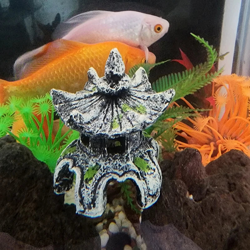 New Resin Artificial Fish Tank Ancient Pavilion Decoration Aquarium Rock Cave Building Decoration Aquatic Landscaping Ornament Decor