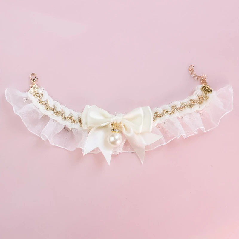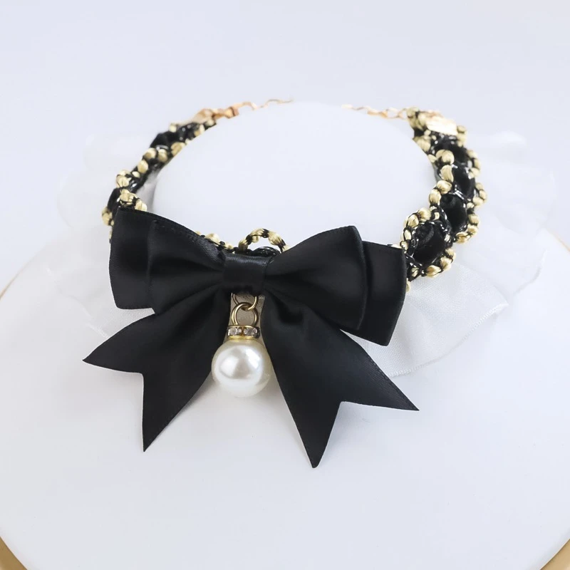 Romantic Summer Dog Collar Bow Tie Pearl Lace Party Cat Necklace for Small Puppy Luxury Designer Chihuahua Pet Neck Accessories