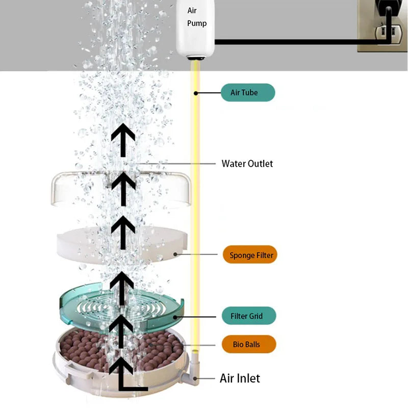 Round Aquarium Fish Tank Filter Transparent Biochemical Sponge Filter Aquarium Water biological Filter Submersible Water Pump