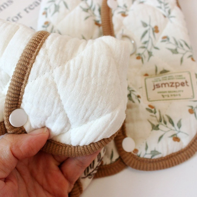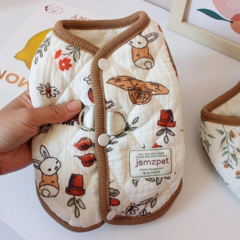 Sleeveless Thick Coat for Dogs Cartoon Animal Print Puppy Clothing Pure Cotton Cat Winter Clothes Outdoor Walking Leash Overalls