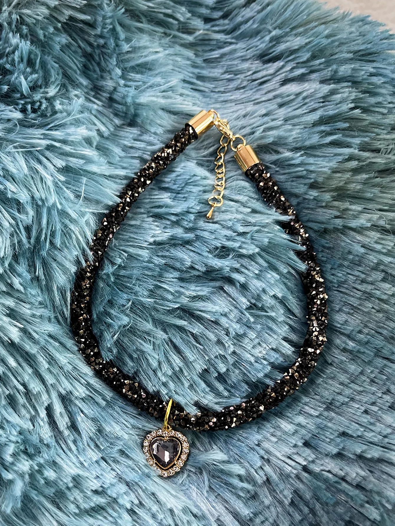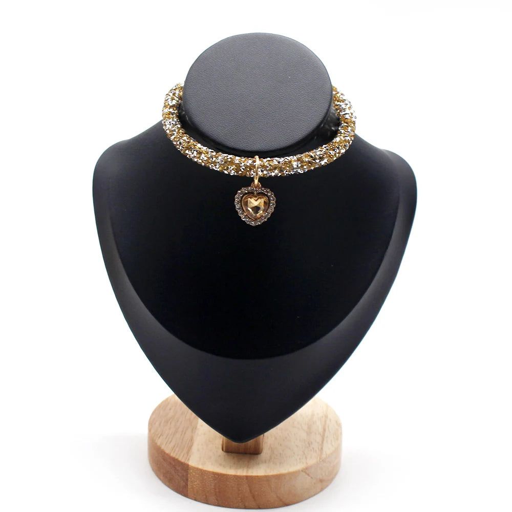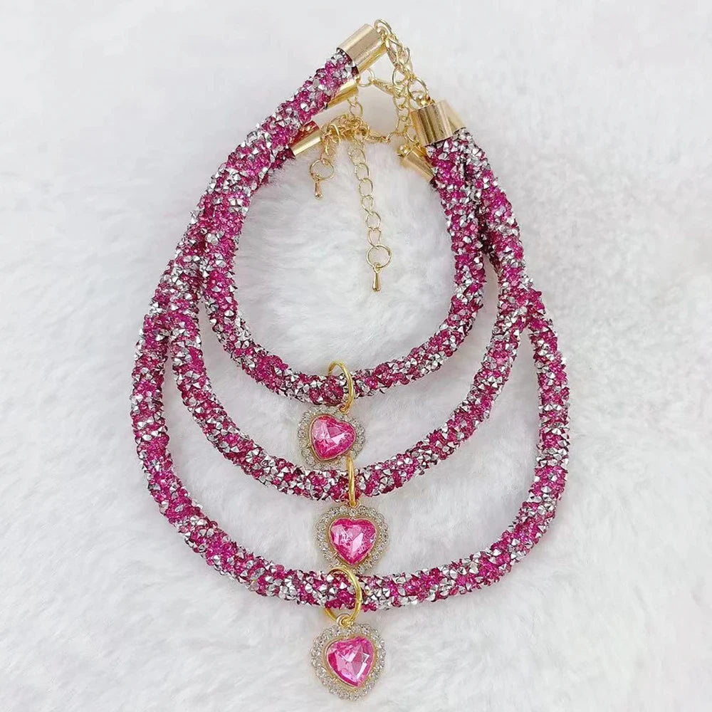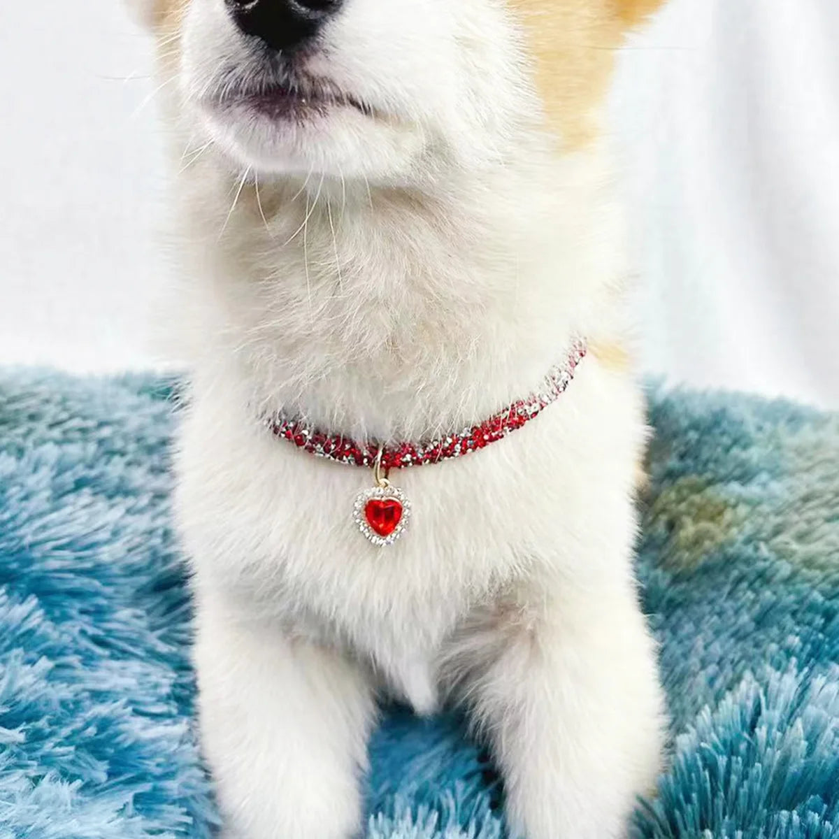 Soft Puppy Cat Collar with Heart Diamond Pendant Adjustable Luxury Reflective Bling Rhinestone Collar Crystal for Cats Small Dog