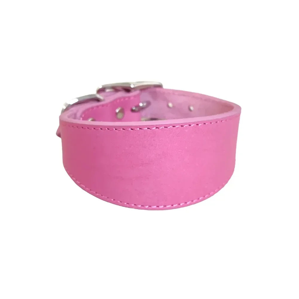 Soft Real Leather Extra Wide Padded Tapered Dog Collar Glossy Brown Black Greyhound Saluki Deerhound Lurcher Whippet Dachshund