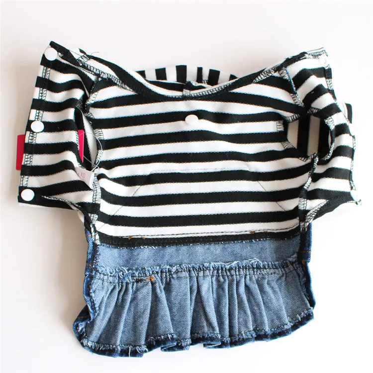 Spring Autumn Dog Clothes Dog Jeans Dress for Small Medium Dogs, Fashion Pet Denim Jacket Stripe Shirt Hooded Coat Puppy Skirts
