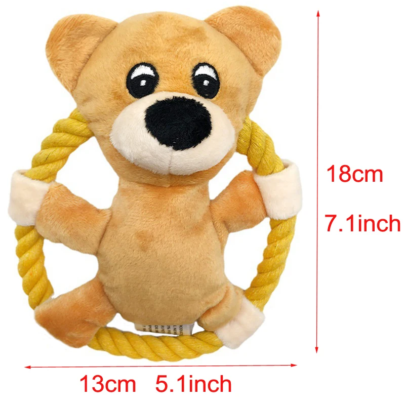 Squeaky Dog Toys for Small Medium Dogs, Pig Duck Bear Shape Puppy Dog Teething Toy with Cotton Rope Cute Animals Plush Interactive Toys Pet Accessories