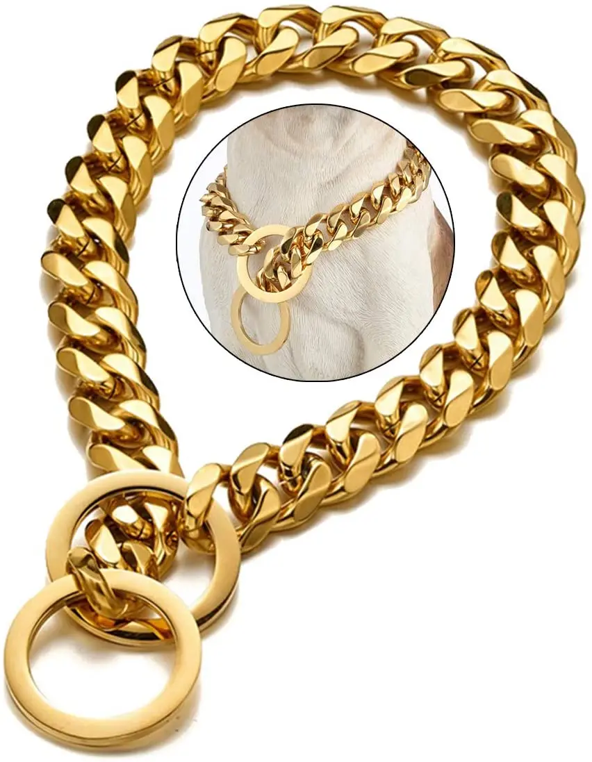 Steel dog chain: made of 316L stainless steel, with maximum strength and durability, 18K gold-plated, super strong dog collar, even if it bears 100 pounds (about 45 kg) of force, it will not be affected.
