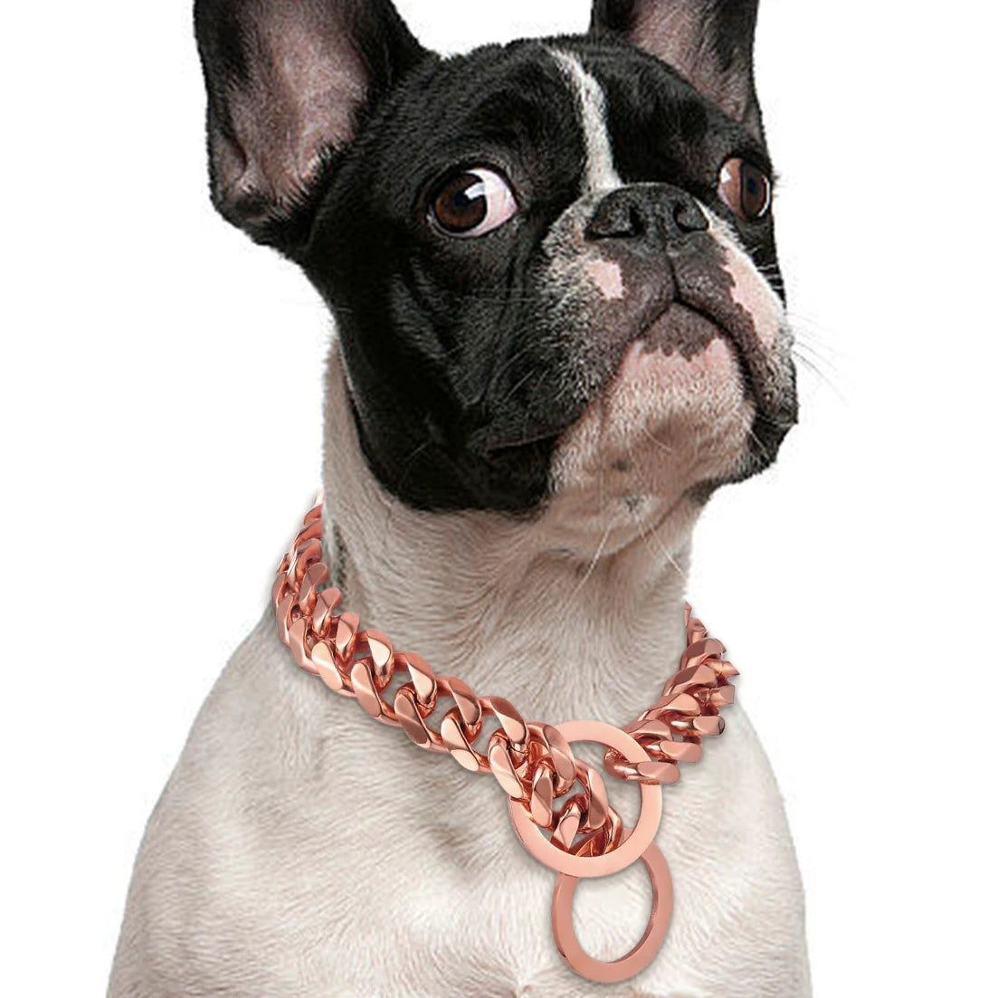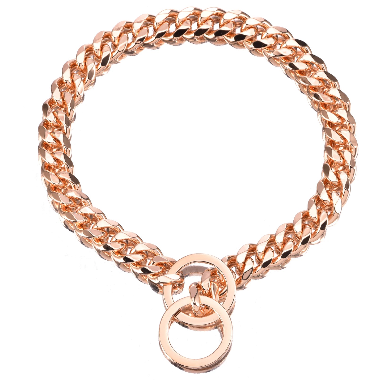 Stainless Steel Dog Chain Collar, Rose Gold Pet Necklace, Strong P Chain Choker for Small and Big Dogs, 15mm Width