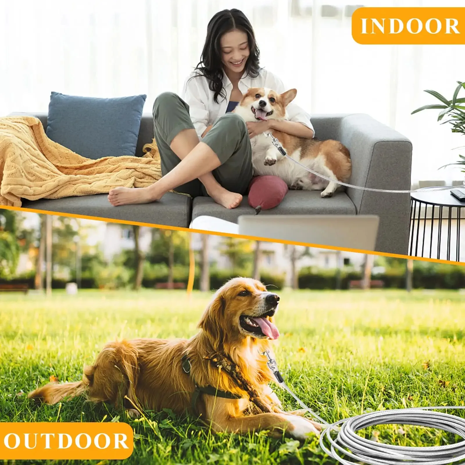 Strong Tie Out Cable: The tie out cable for dog is made of 5mm strong steel wire rope and PVC coating , which is chew and rust proof,the alloy clips with safety lock has rigorously quality tested.At 10/20/30/50 feet long, rigorously tested for dogs up to 250 lbs,has high tensile strength and impact toughnes.