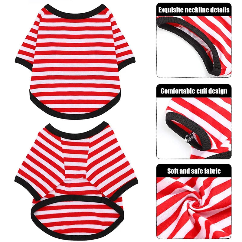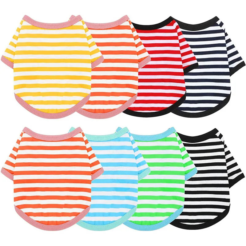 Stripe Dog T-shirt Small Dog Cat Tee Puppy Short Sleeve Cotton Summer Dog Clothes for French Bulldog Yorkie Terrier Pet Apparel Wholesale Dog Clothing