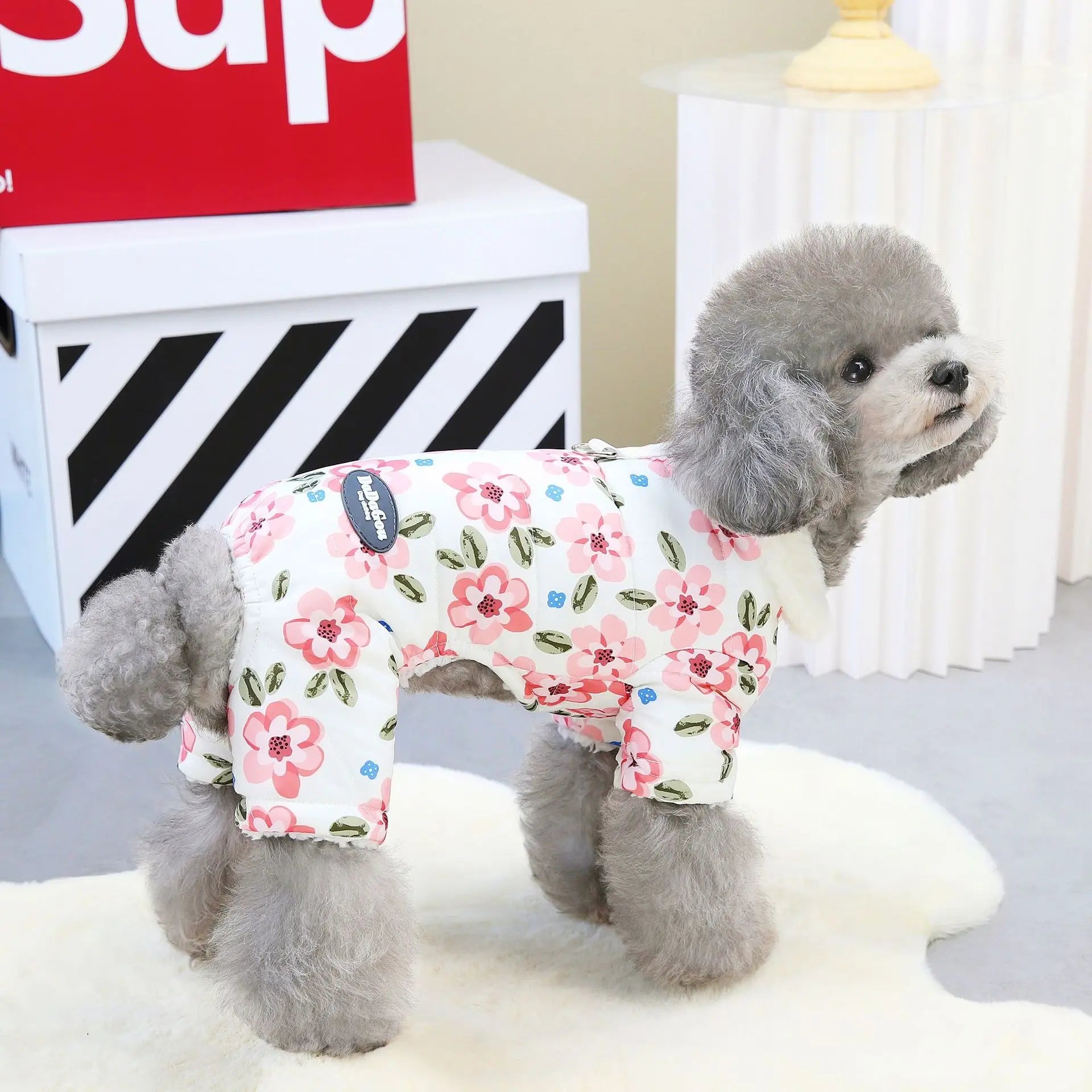 Thicken Warm Sherpa Fleece Liner Dog Jumpsuit with Fur collar for Small Dogs Girl, Cute Floral Puppy Pajamas Onesie Winter Clothes Pet Apparel
