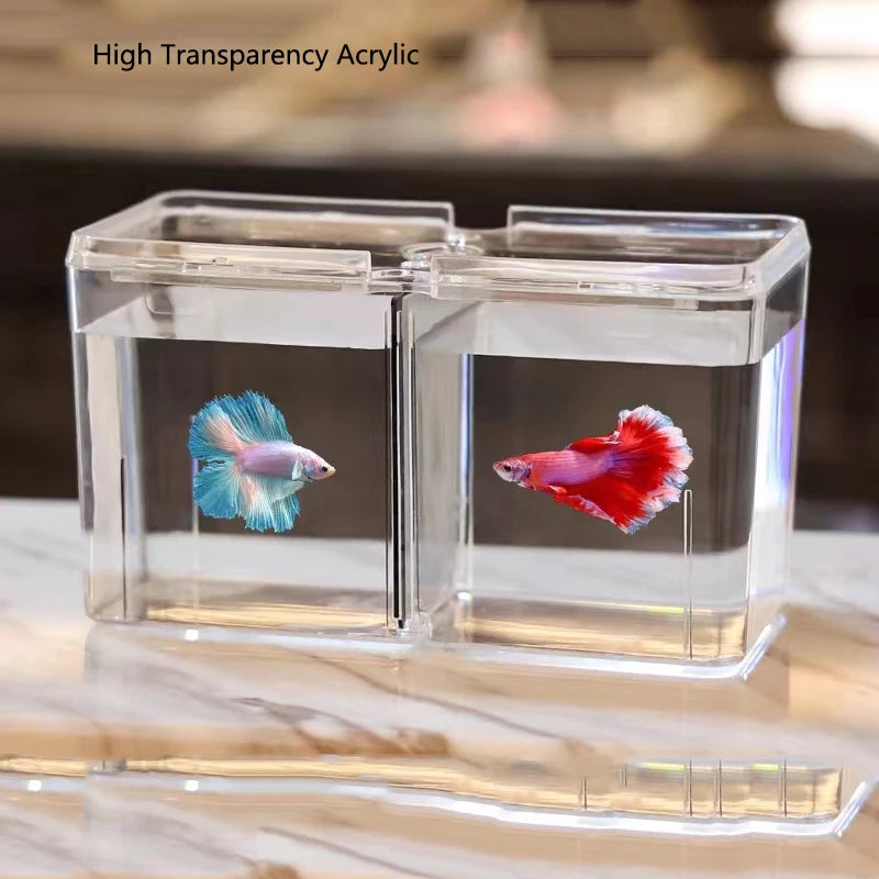 Transparent Acrylic Two Splits Guppy Fish Tank Aquarium Betta Fish Bowl Transparent Aquarium Hatchery Breeding Isolation Box
