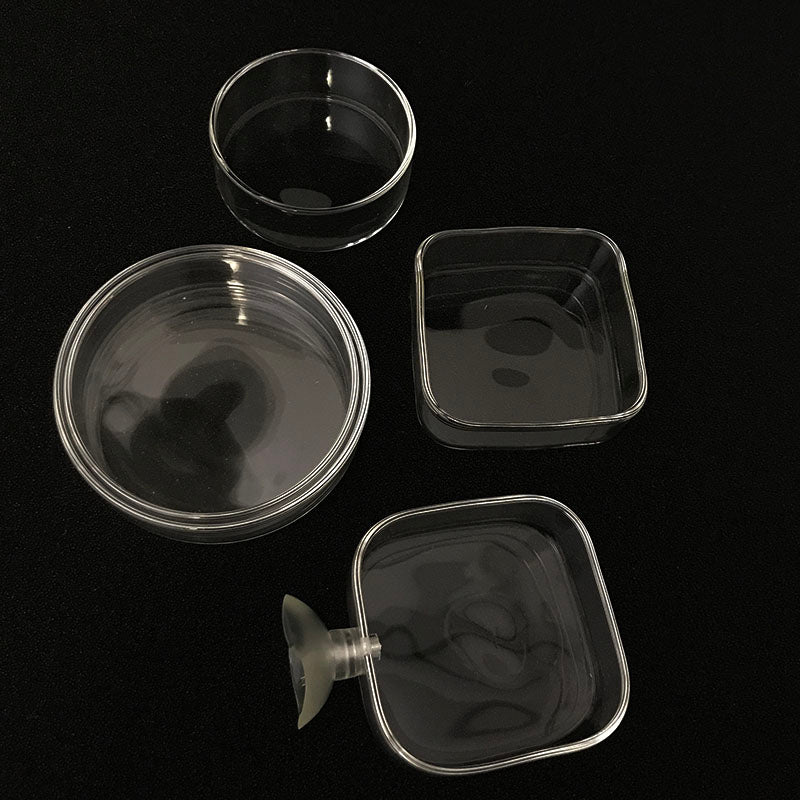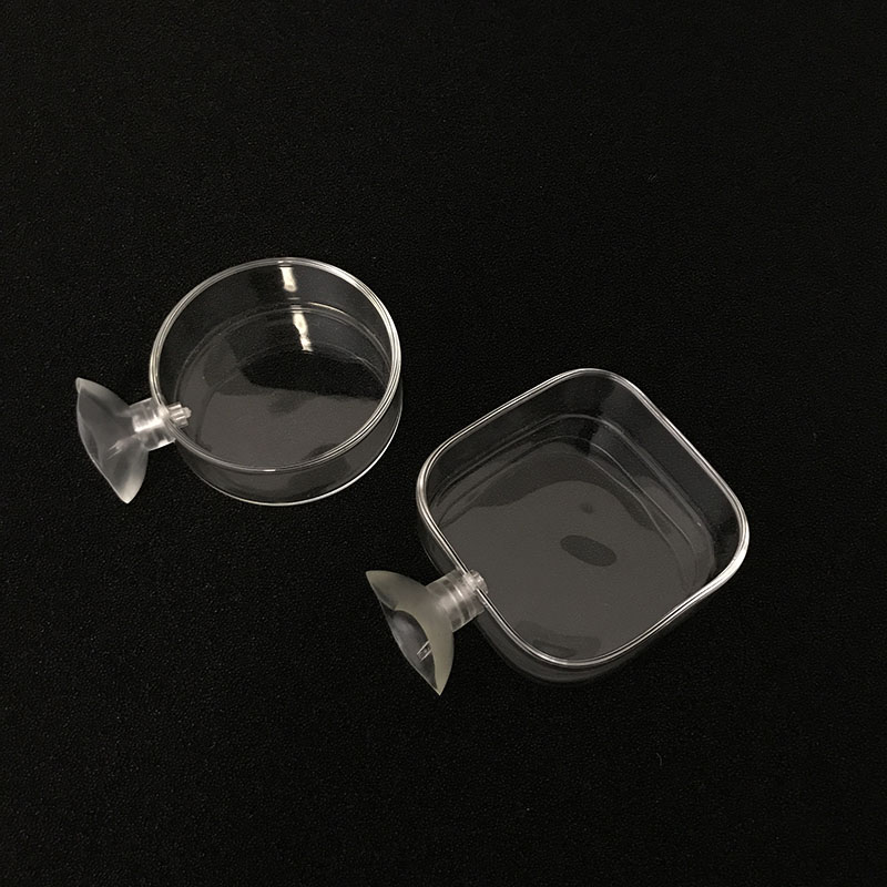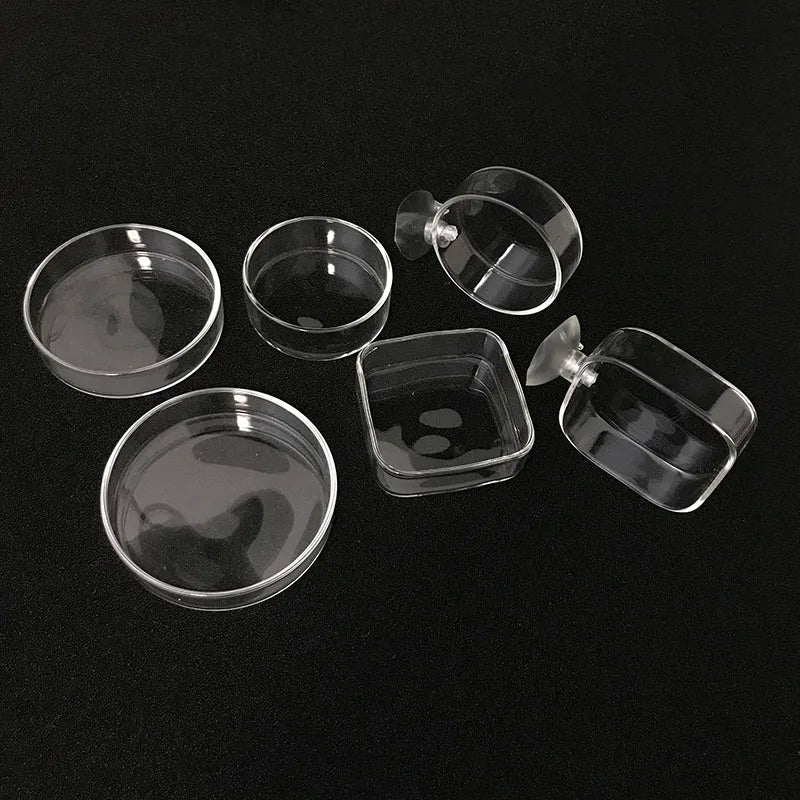 Transparent glass aquarium feeder, suitable for containing shrimp food.