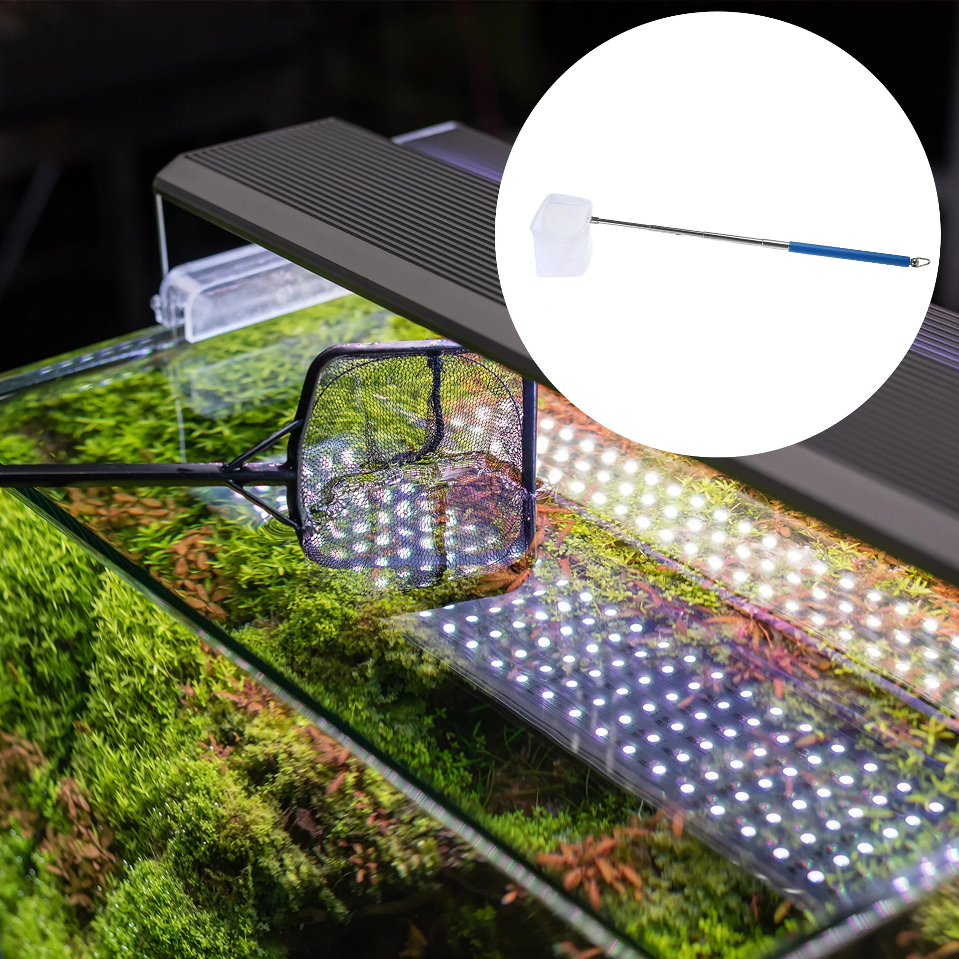 • In addition to cleaning up some extra fish food that was accidentally poured, the fish net becomes a handy tool when you need to quickly handle fish, and transfer them between tanks.