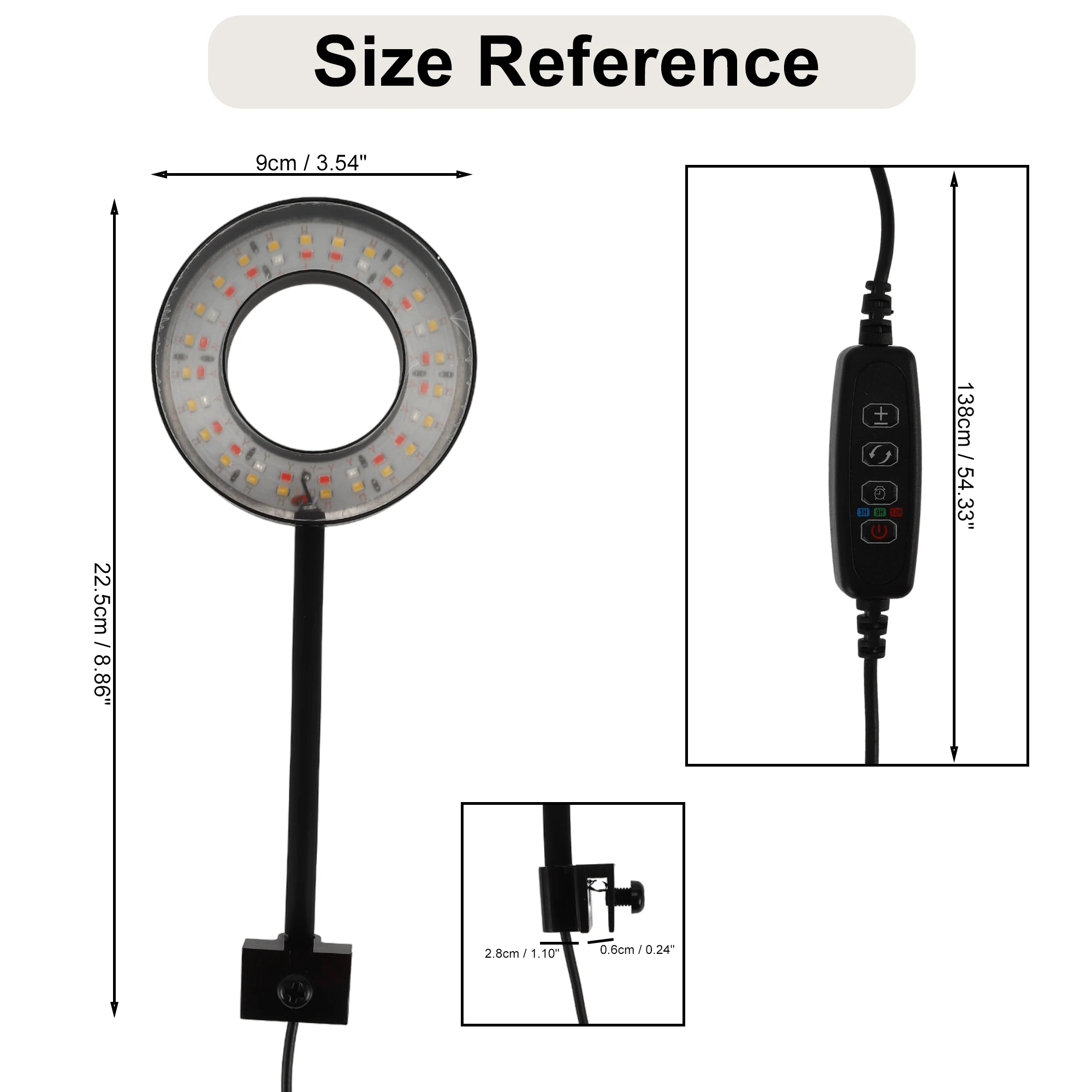 Light Clamp Width: 0.6cm / 0.24"