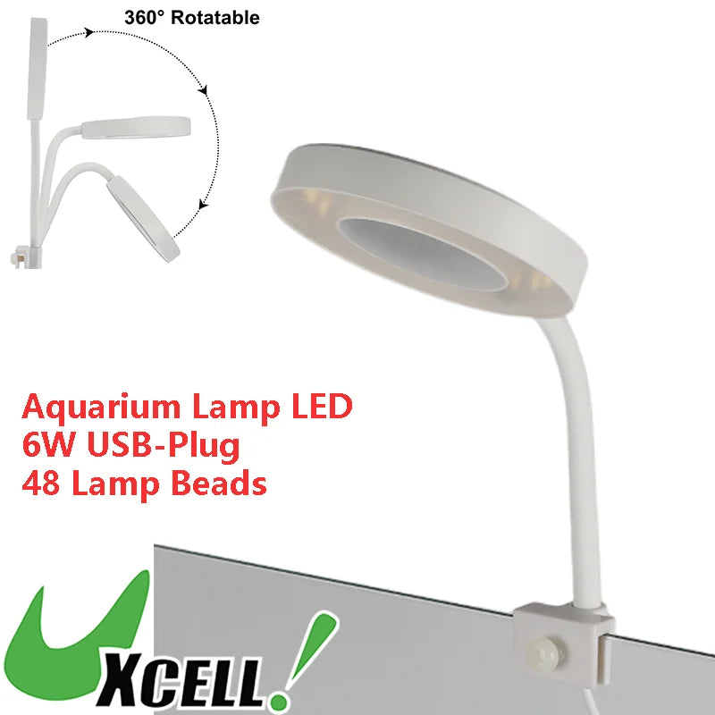 UXCELL Aquarium Light LED USB-plug Lamp with Timer 360° Rotate 3 Lighting Color Aquarium Plant Light for Fish Tank Clip-on