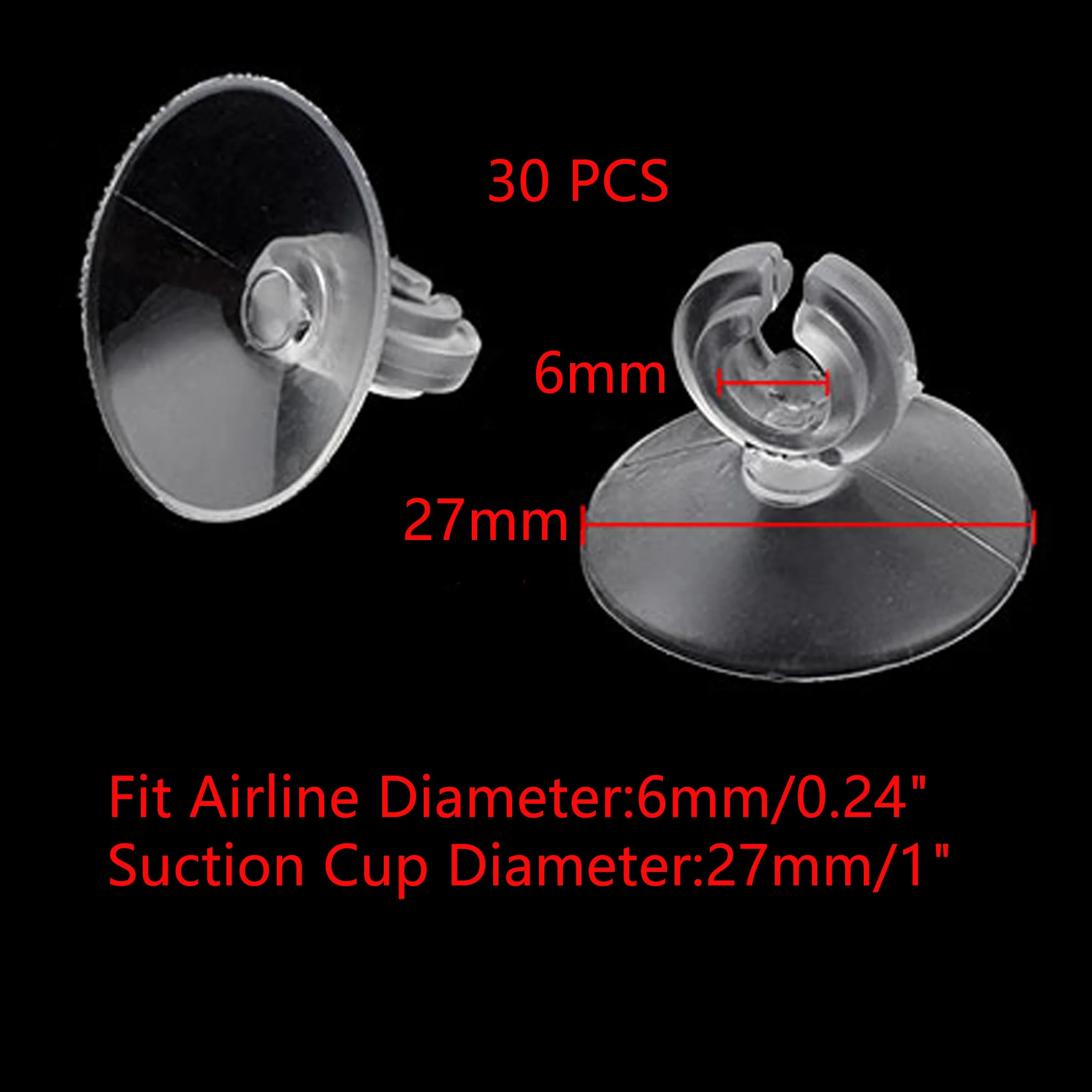 Used with air line tubing, cone feeder.The suction cups are various useful for a range of purposes aquarium work.Designed with clip top to hold airline in place.Suitable for 6mm air line tubing, 26mm diameter suction cup.
