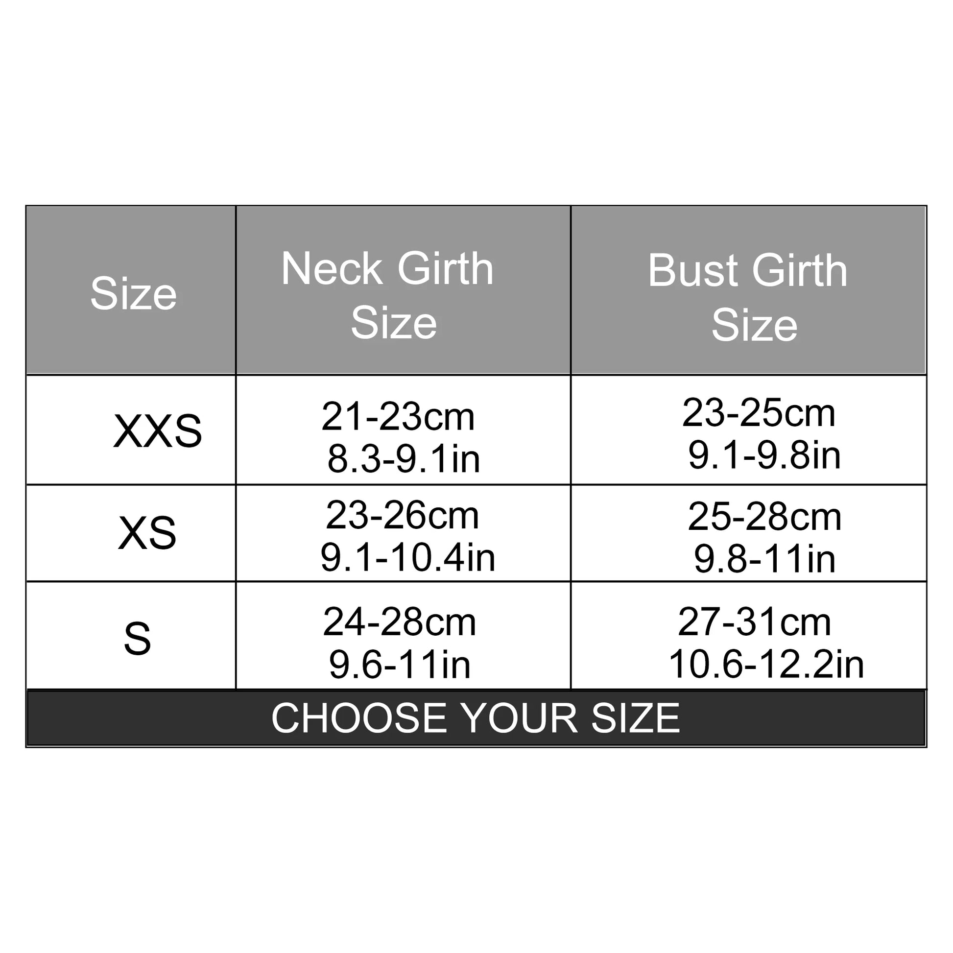 Please measure your pet’s bust (full part) girth and neck girth before purchase.
