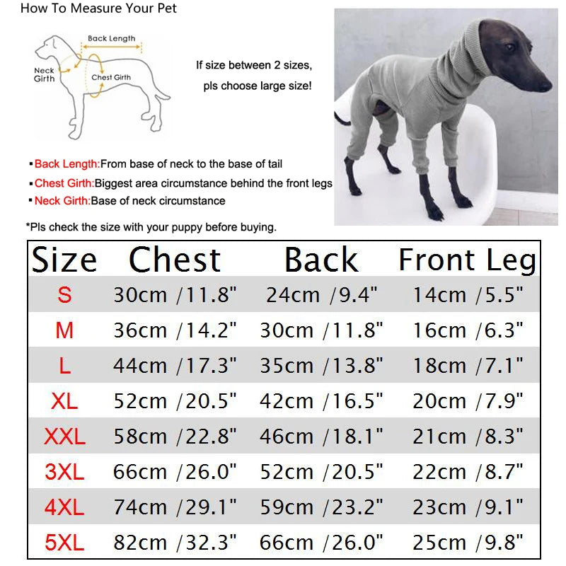 Whippet Italian Greyhound Clothes Lightweight Dog Jumpsuit for Medium Large Big Dogs Turtleneck Pet Pajamas Onesies for Shepherd