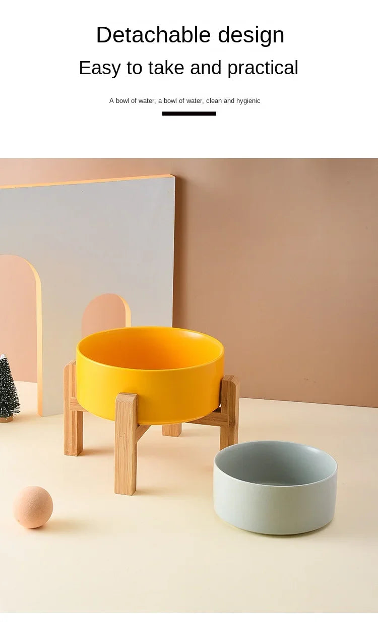 Name: Pet Dog Food Bowl with Elevated Bamboo and Wood Frame to Protect Cervical Spine and Drink Water Bowl from Hitting
