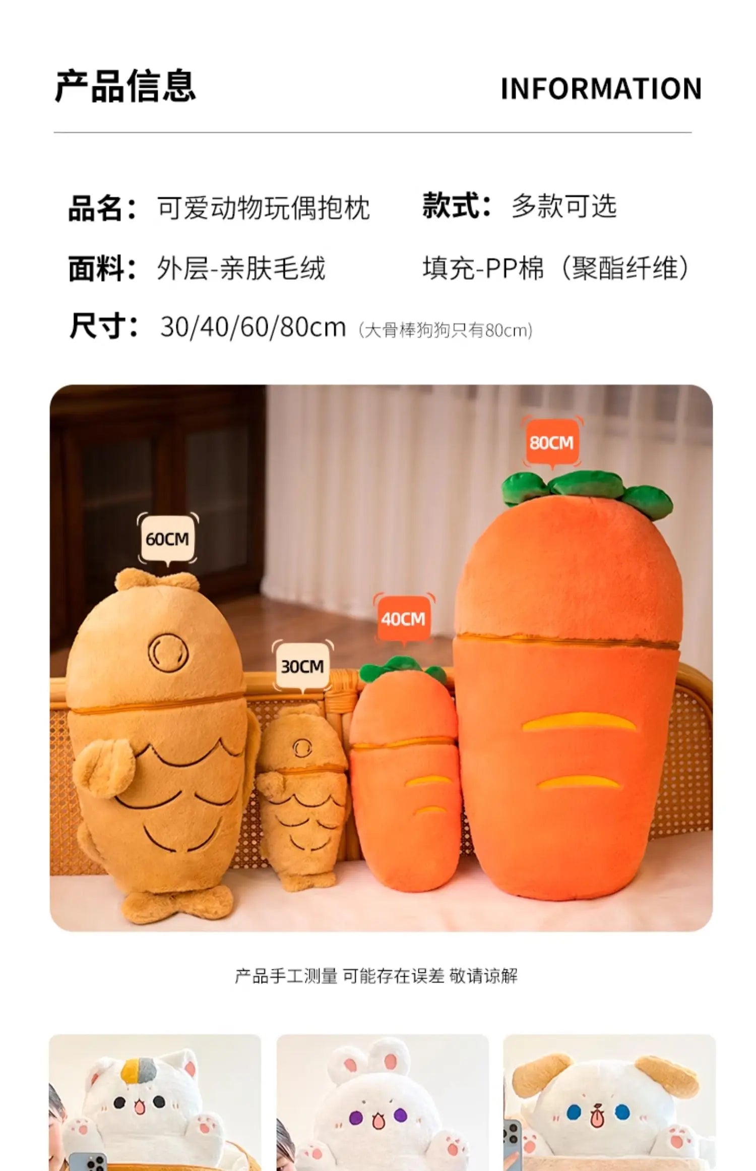 1pc 40/60/80cm Japan Taiyaki Cat Plush Toy Anime Figure Cat Hiding in Cushion Bag Ferry Bunny Carrot Animal Plushie Throw Pillow