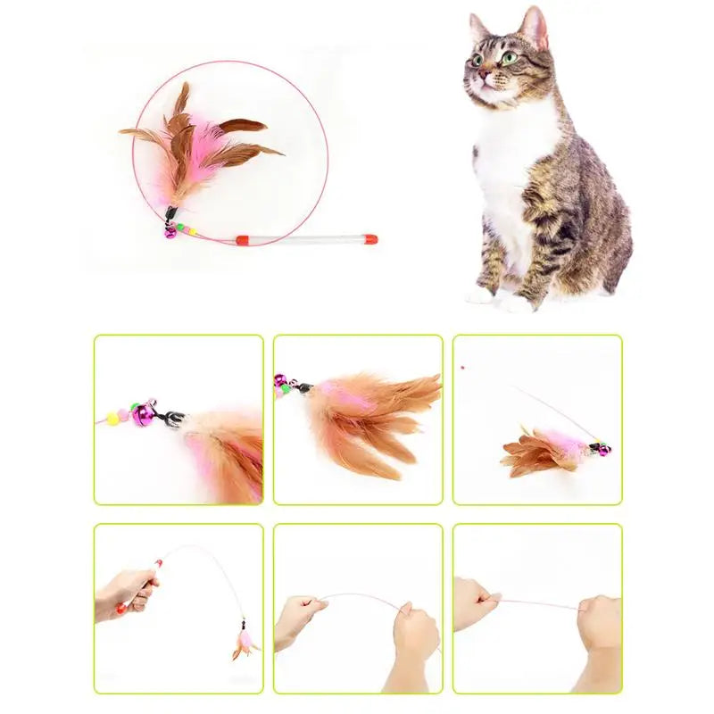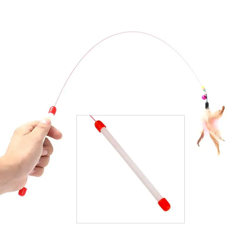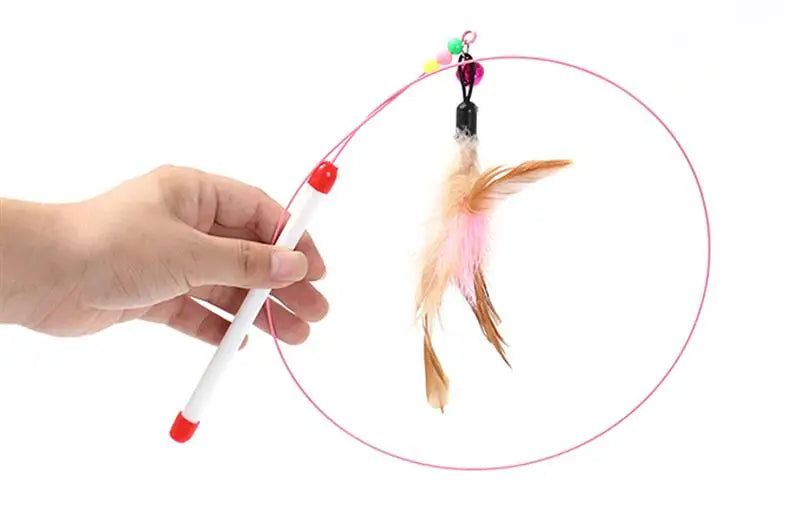 1pc Cat Toy Stick Feather Wand With Bell Mouse Cage Toys Plastic Artificial Colorful Cat Teaser Toy Pet Supplies Random Color