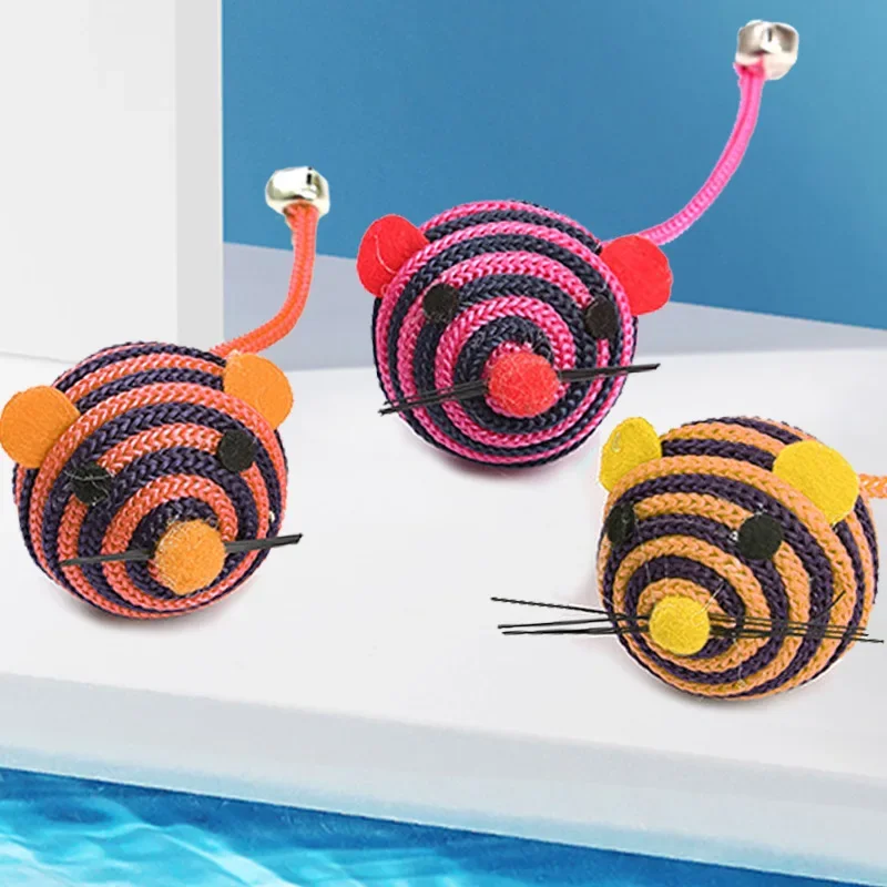 Pet Cat Toy Lovely Stripe Nylon Rope Round Ball Mouse Toy with Bell Pet Cat Chew Toy Cat Toy Interactive Mouse Ball Pet Products
