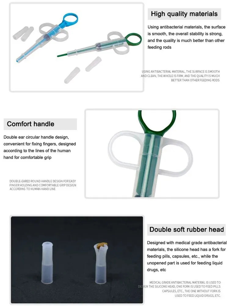 Different Silicone Tubes: there are comes with 2 different styles of feeding tubes, one of which can hold the small pills, and the other one is suitable for feeding liquid; Note:The soft tip must be completely sleeved on the top until it cannot be sleeved in