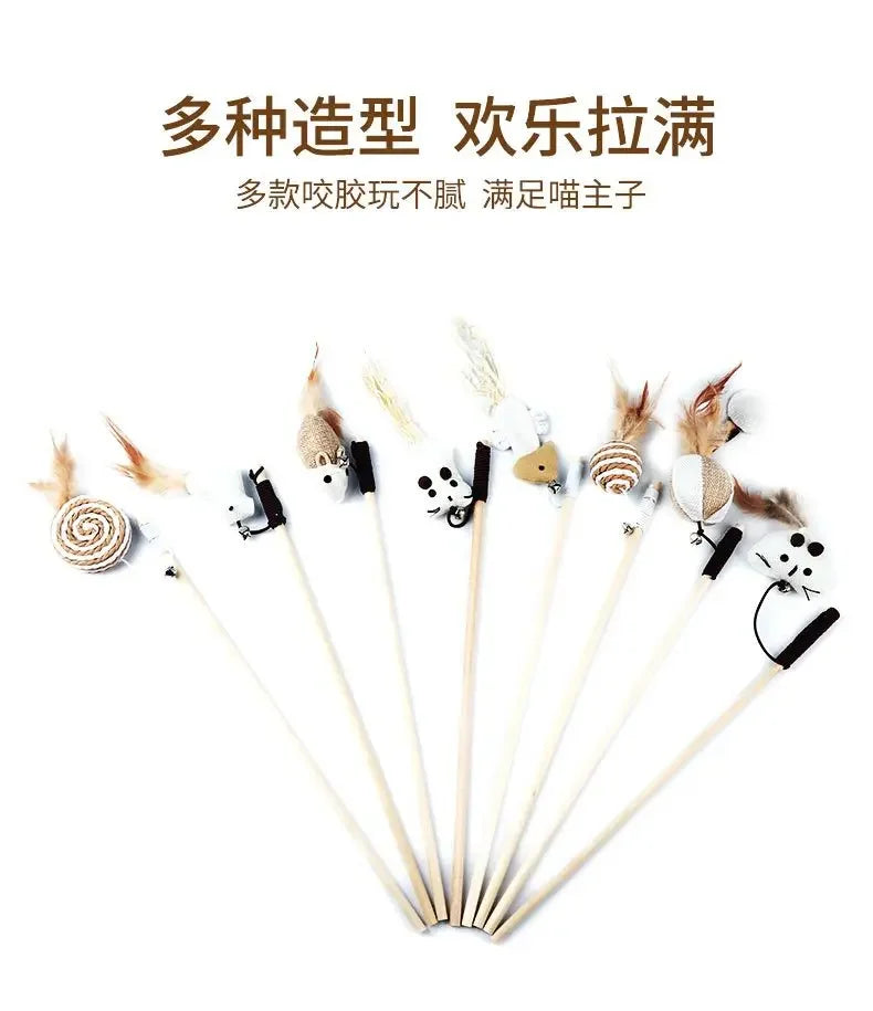 1PC Teaser Feather Toys Kitten Funny Colorful Rod Cat Wand Toys Wood Pet Cat Toys Interactive Stick Pet Cat Supplies