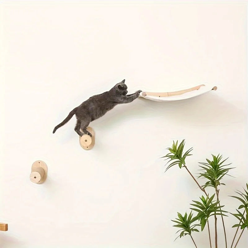 1PC Wall Mounted Cat Tree Cat Climbing Wooden Shelf Climbing Hammock Set Scratching Post and Ladder for Cats Playing&Sleeping
