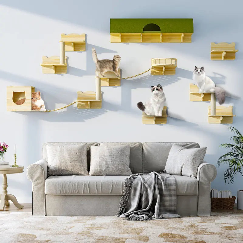 * Toys - The owner can put the cat's favorite toys on the cat wall, and the cat will climb to play with the toy.
