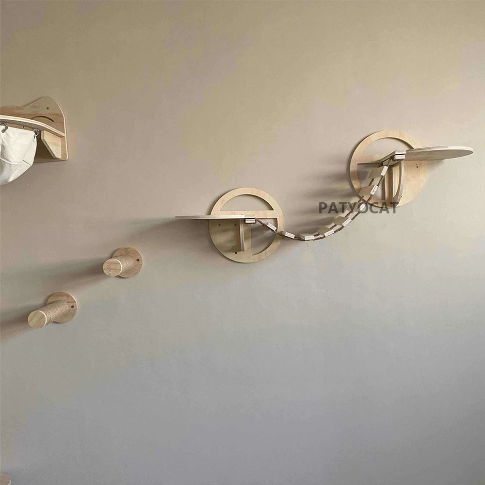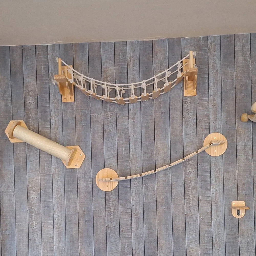 1PC Wall Mounted Climbing Shelf Cat Bridge Cat Hammock and Scratching Post or Wood Stairway for Kitten Indoor Playing and Rest