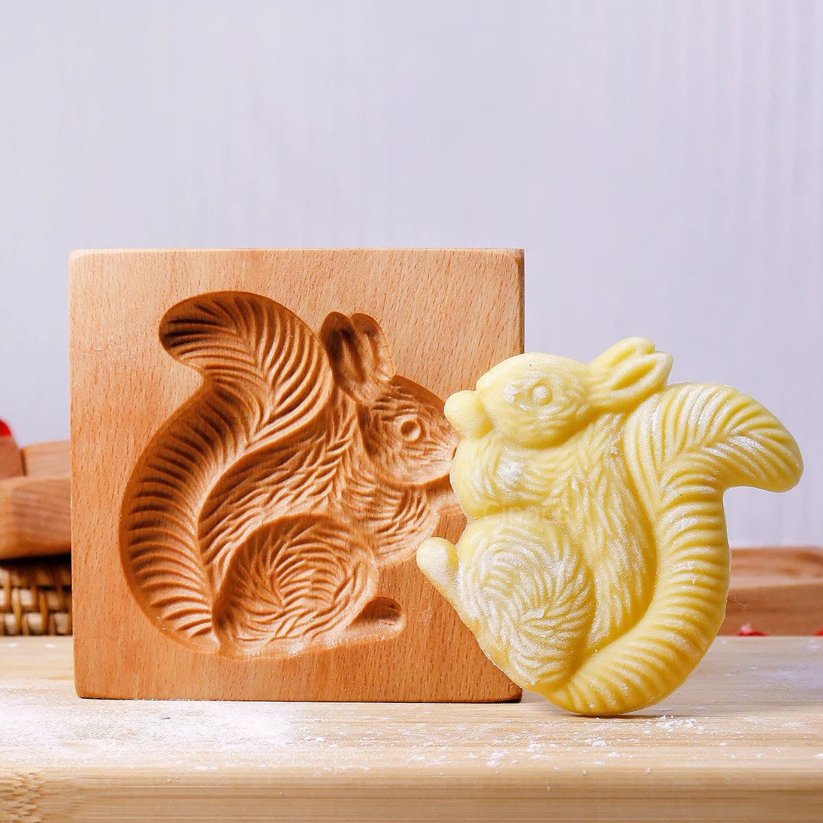 1PC Wood Cookie Mold, Animals Patterns, 3D Carved Embossed Biscuit Cutter Moulds, Fish, Bird, Bear, Sheep, Tiger, Horse, Squirre