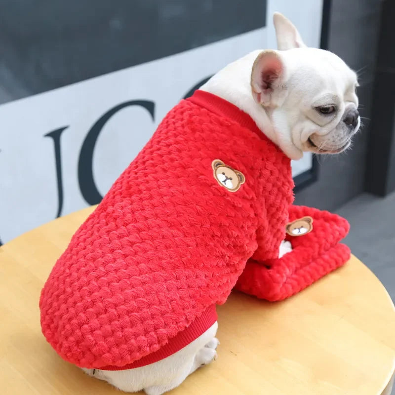 2024 New Warm Fleece Pet Clothes Cute Print Coat Small Medium Dog Cat Shirt Jacket Teddy French Bulldog Chihuahua Winter Outfit