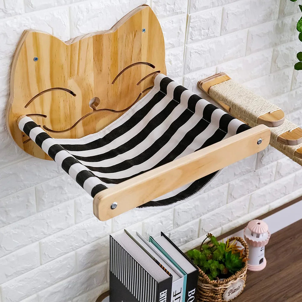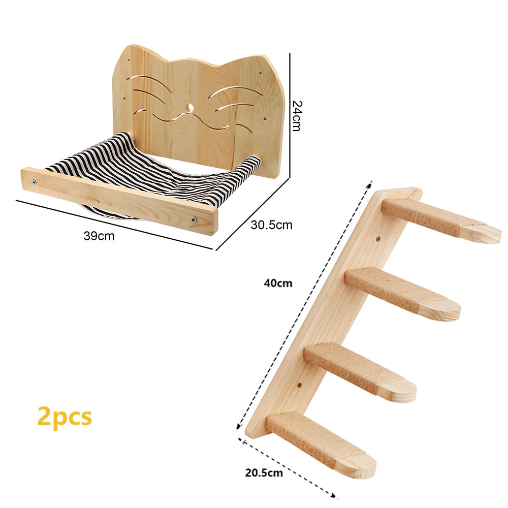 2Pc Wall Mounted Cat Climbing Set Hammock and Steps Four Layers Hemp Rope Wall Pet Furniture Supplies Cat Accessories