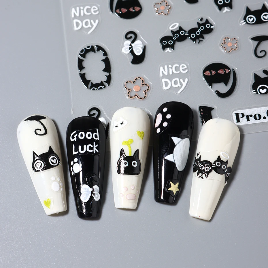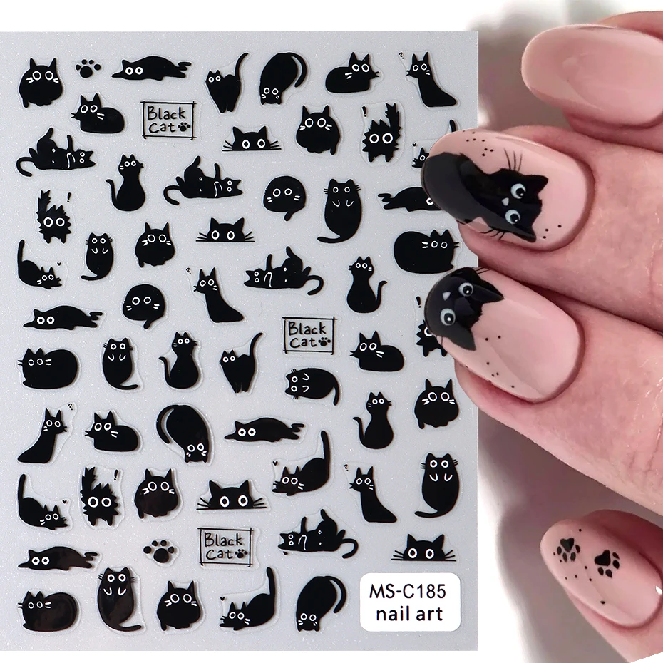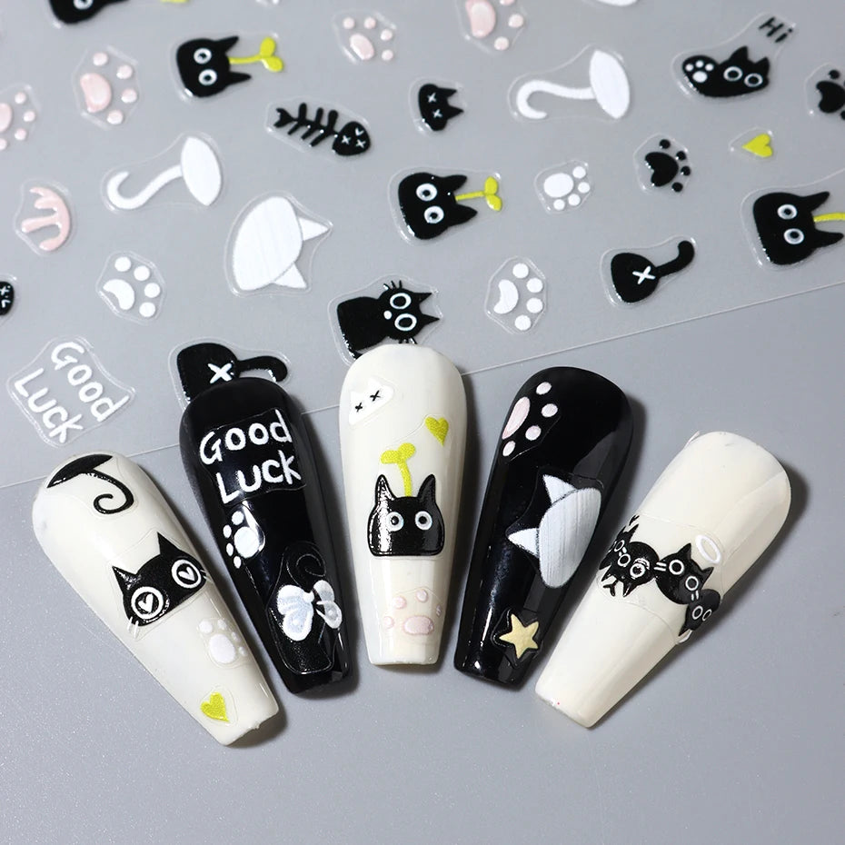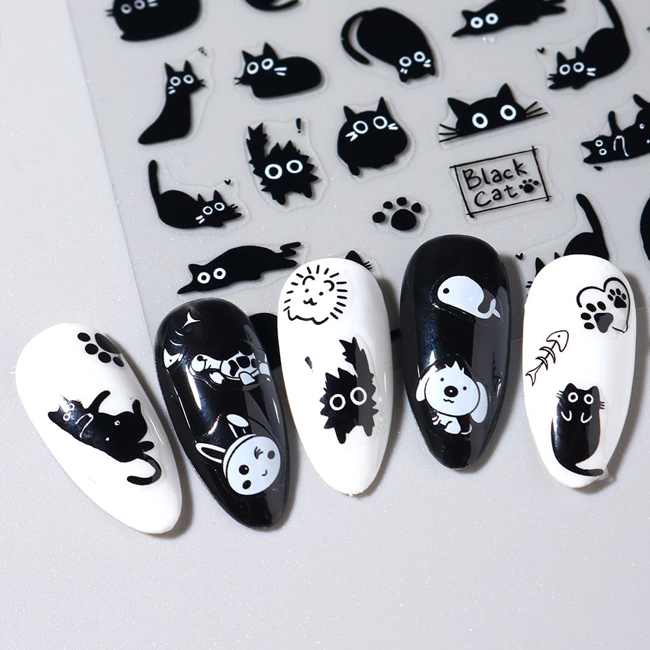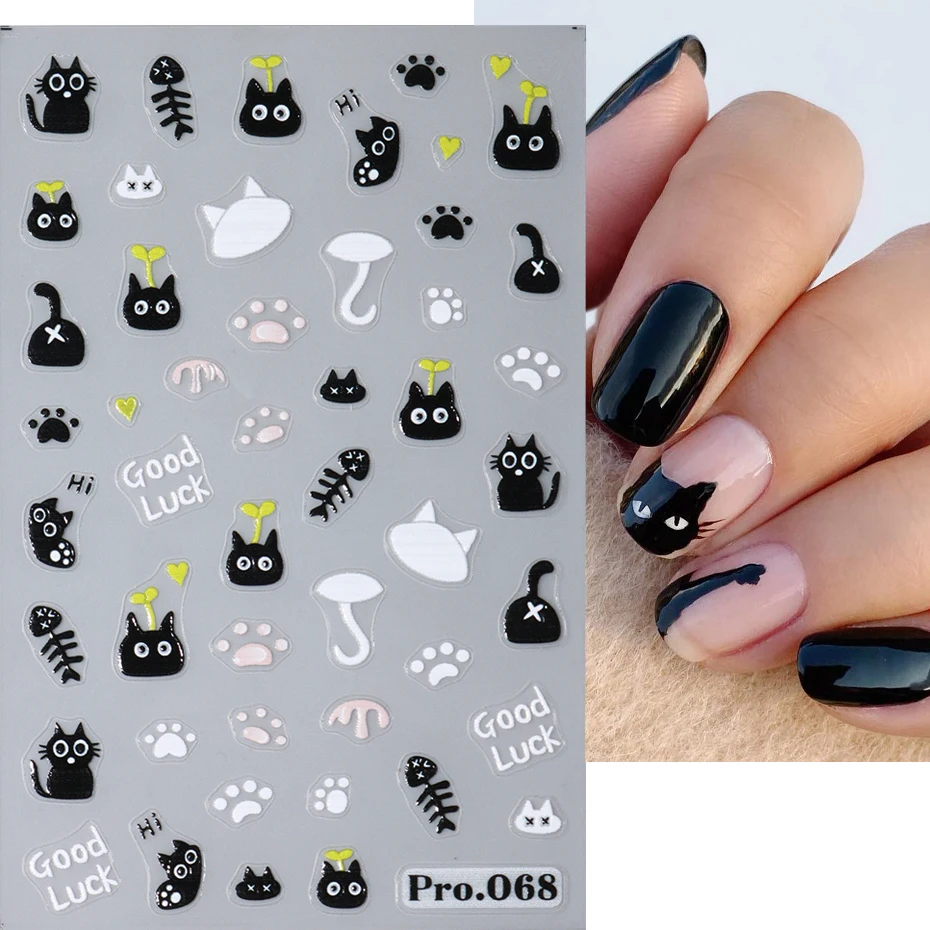 [Style] Black Cat Nail Art Sticker 3D Decal for Nail Decorations Manicure