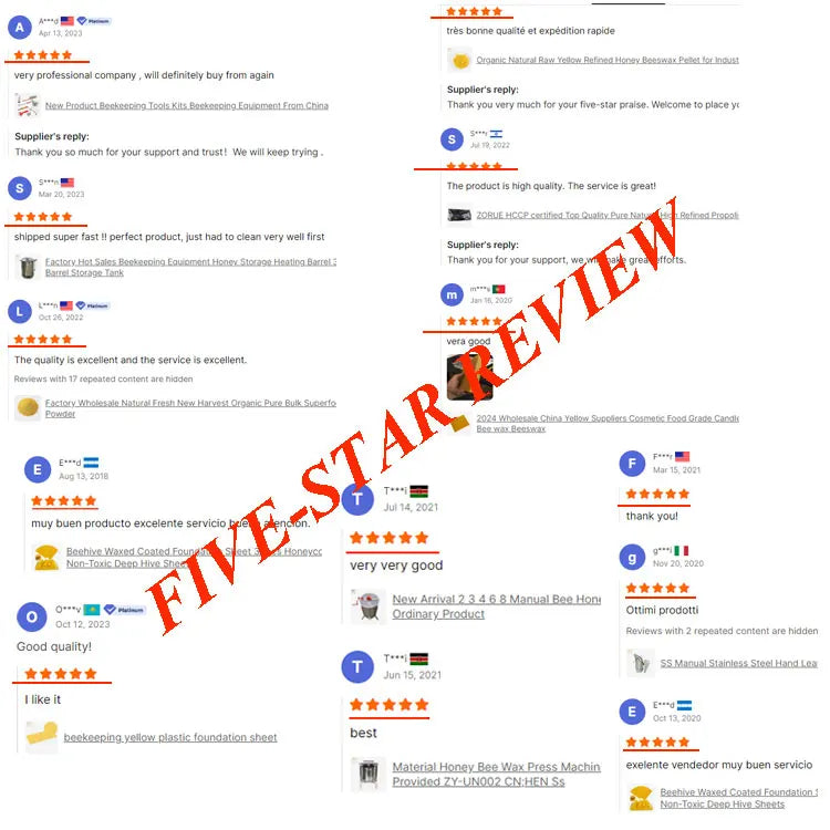 Henan Zhuoyu Bee Industry Co., Ltd is established in 1986, located in the biggest beekeeper base -- Changge city.We mainly supply the bee products and the bee keeping equipments, such as the beeswax, bee pollen, propolis, honey extractor, beehive, foundation machine and others. We have the 10000 level GMP workshop, advanced products production line, perfect quality guarantee system,safety and modernization testing instrument equipment.Our products export to Germany, America, Australia, Japan, South Korea and other countries. Of our best products quality, reasonable price, fast delivery, perfect service, our company gained very good comments from our clients. Zhuoyu look forward to hear from you, seeking more cooperation opportunities, constantly create the beautiful, sweet future!