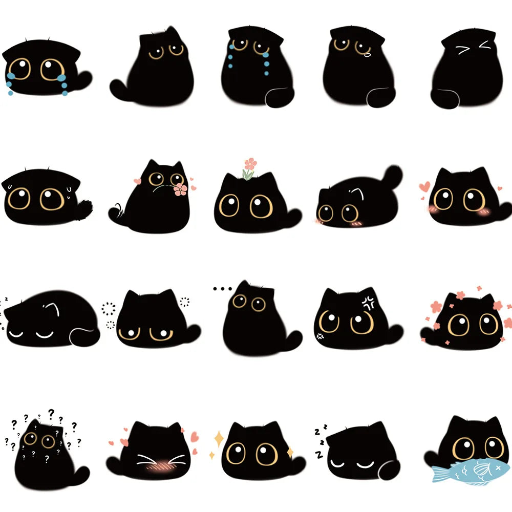 40PCS Black Cat Cute Kawaii Stickers Vintage For DIY Notebook Guitar Scrapbooking Motorcycle Laptop Luggage Graffiti Decals