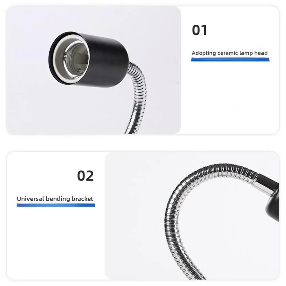 5. heat-resistant, it can also be adjusted by a rotary button on the cable for optimal lighting. The stainless steel body is designed to rotate 360 degrees and the light will shine on your pet. The end of the bag is made of rubber wrap, so you can hang it on a breeding box or hang it on the wall to get sunlight at your preferred Angle or comfort