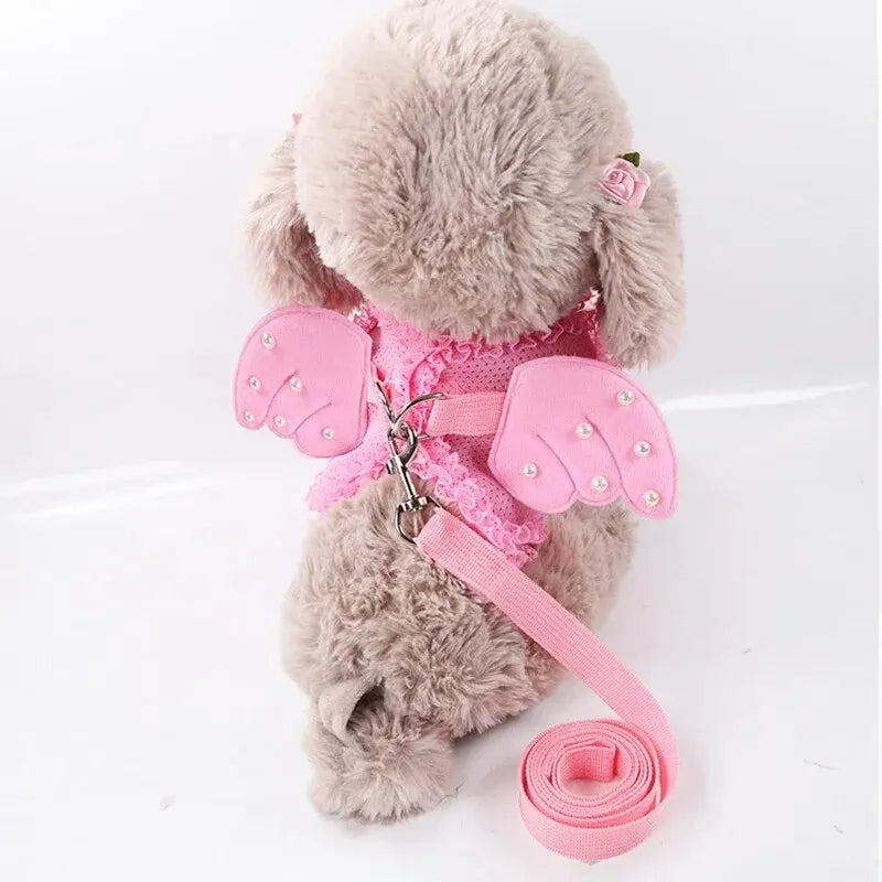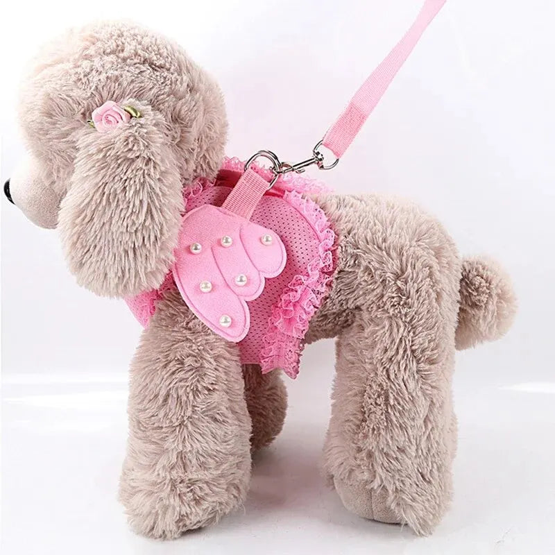 Angel Pet Dog Leashes Lace Mesh Pet Dog Harness Pearls Wing Adjustable Harness For Small Dogs Cats Pet Accessories