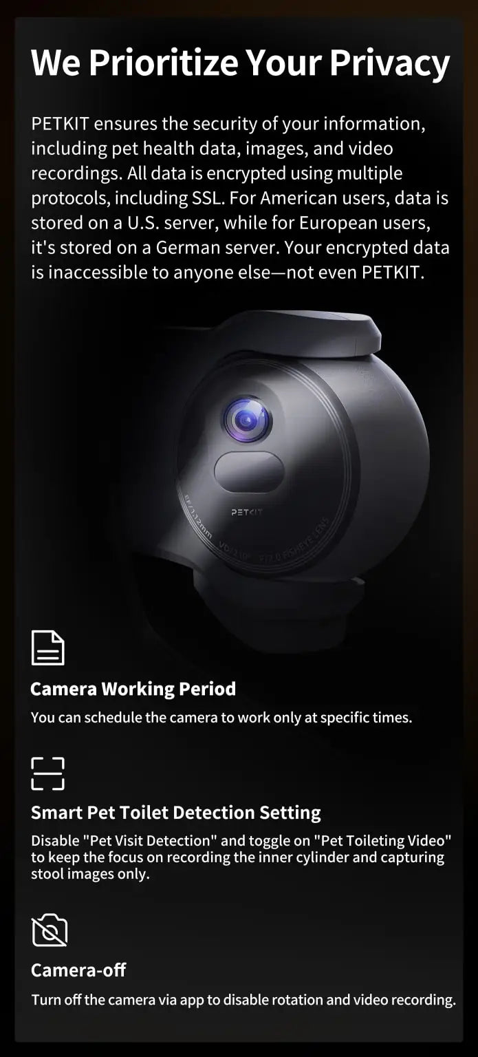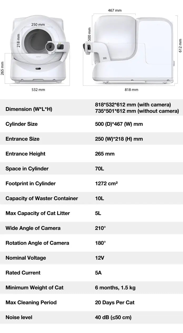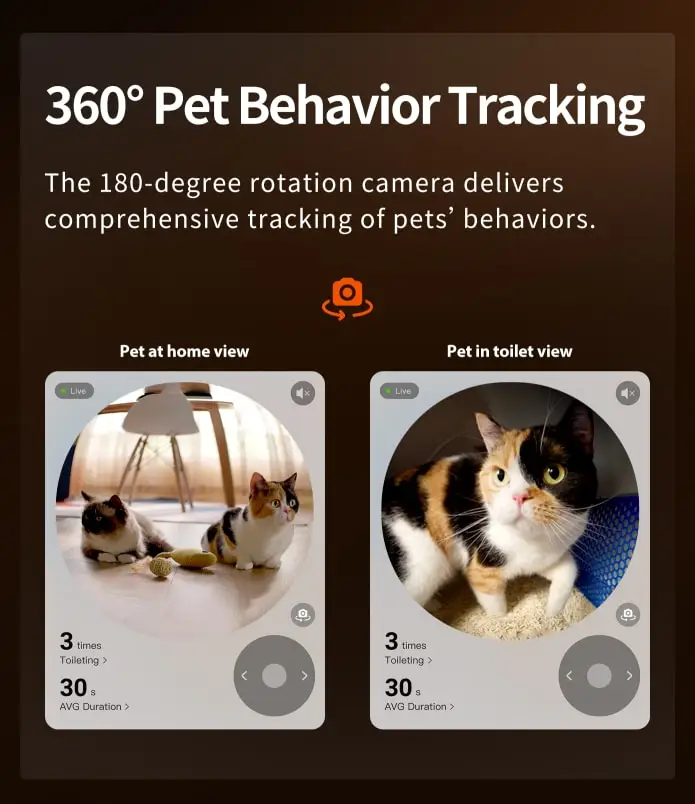 Automatic Litter Pan with Rotating CameraSealed and Odor-InsulatedMultiple Litter AvailableEasy-to-Clean Cat Litter Boxes