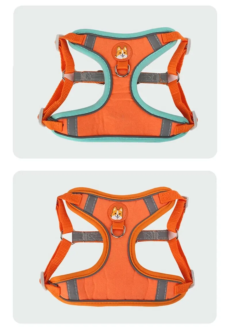 Booteely Pet Suede Chest Harness Vest Dog Cat Strap Reflective Leash Retractable For Small Light And Convenientn