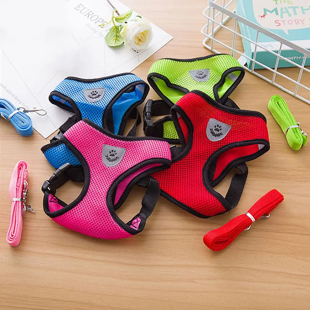 Breathable Mesh Fabric Dog Leash Soft Comfortable Pet Harness Puppy Cat Vest Collar Pet Supplies For Chihuahua Pug Bulldog