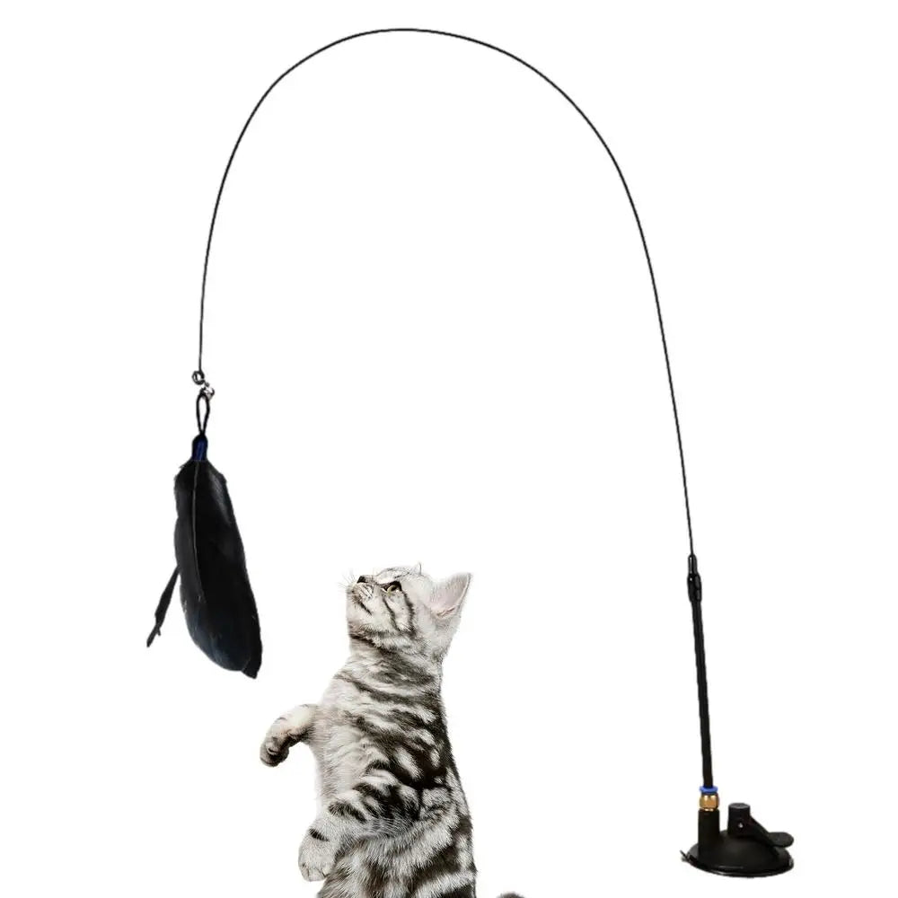 Cat Feather Wand Toy Cat Fishing Pole Toy Cat Teaser Stick With Detachable Feather Suction Cup Toy For Cats Exercise And